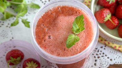 Смузи из ревеня и клубники с добавление яблока получается в меру сладким и не требует добавления искусственного подсластителя. Мята придает…