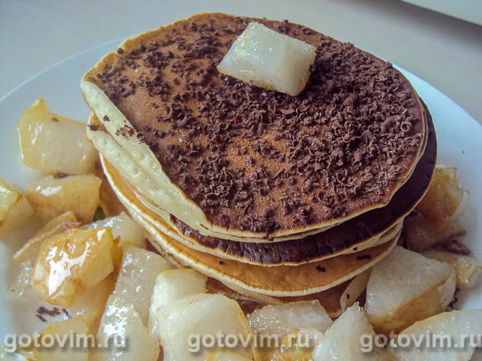 Американские блинчики с грушей и шоколадной стружкой. Рецепт с фото