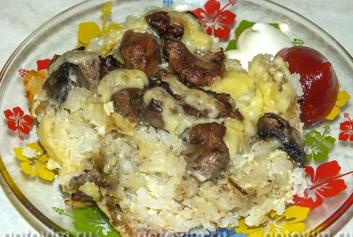 Простое в приготовлении, вкусное блюдо из риса с мясом, напоминающее запеканку. Только продукты здесь не выкладывают слоями, а смешивают всё…