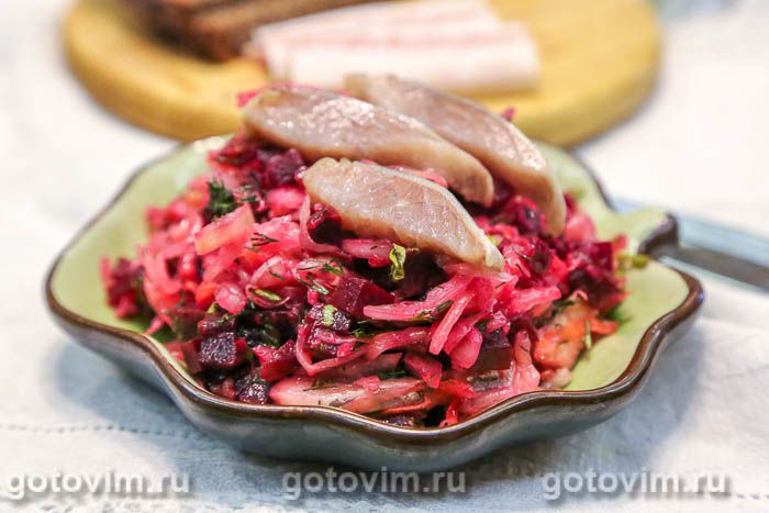 03.11.20251 11Салат из квашеной капусты с сельдью и свеклой. Рецепт с фото