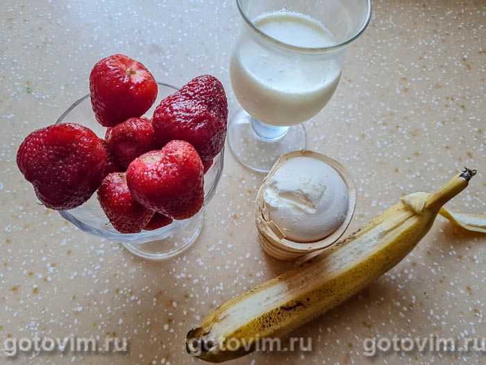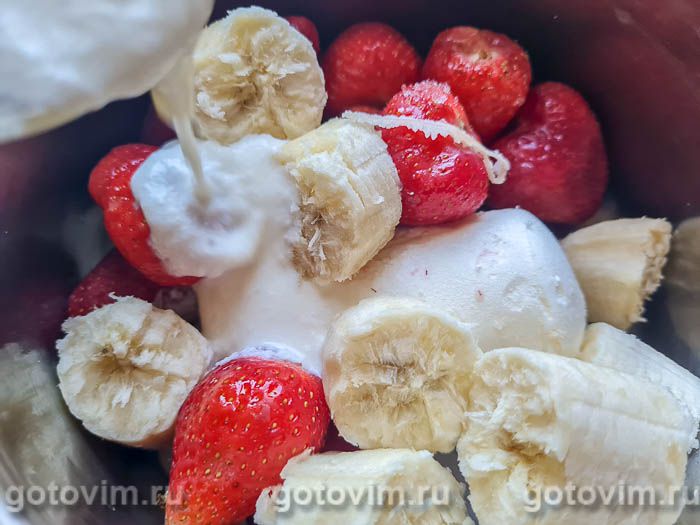 Десерт из готового мороженого с клубникой и бананом. Рецепт с фото