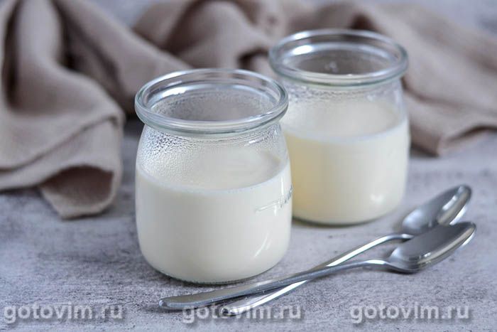 В небольшой ёмкости смешиваем примерно 1 стакан теплого топлёного молока с двумя столовыми ложками натурального йогурта без добавок. Хорошенько перемешиваем ложкой до однородности, разбивая все комочки.
