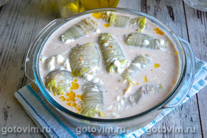 Голубцы из пекинской капусты с фаршем и гречкой в томатно-сметанном соусе. Рецепт с фото