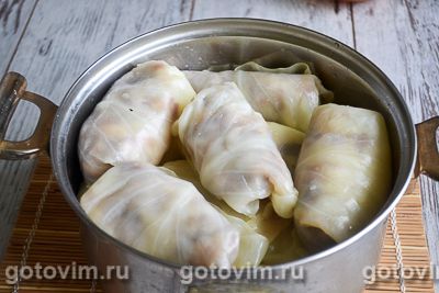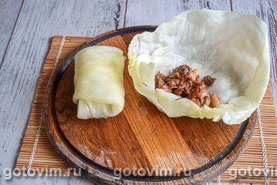 Начинку выложить на листы капусты и свернуть голубцы.