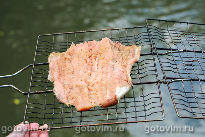 Горбушу тоже можно готовить на мангале, хотя она и суховата для этого. Главное, не передержать её над углями, тогда получится вкусно. Конечно, будет вкуснее, если горбуша свежая, но мне попалась затерянная во льдах морозилки рыба, которую надо было как-то спасти. Чтобы рыба не прилипала к решетке, смажьте её или решетку небольшим количеством растительного масла.