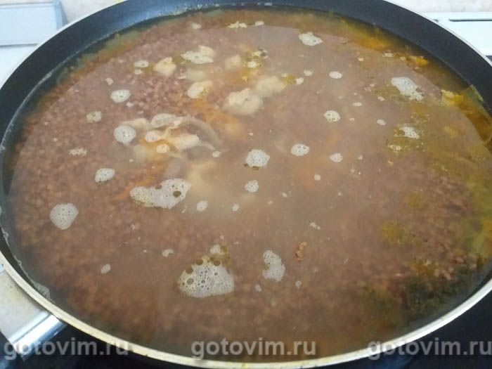 Гречка с мясом и овощами на сковороде. Рецепт с фото