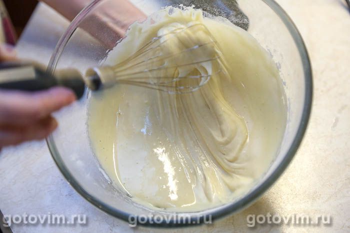 Размешать венчиком, чтобы получилось гладкое, однородное тесто, как на фото.