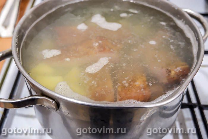 Картофельный суп с копчёными рёбрышками . Рецепт с фото