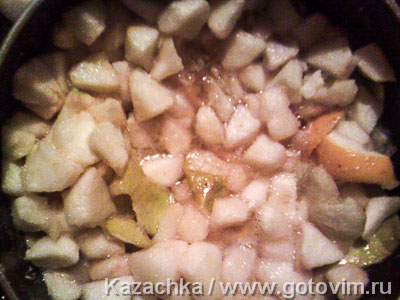 Пару яблок очищаю лентой и не выбрасываю эту шкурку. Яблоки очищенные нарезать кубиками. Положить в кастрюлю яблоки, корицу, немного цедры лимона, ванилин, выдавить сок из лимона и засыпать всей порцией сахара. Сюда же добавить очистки, которые лентой.