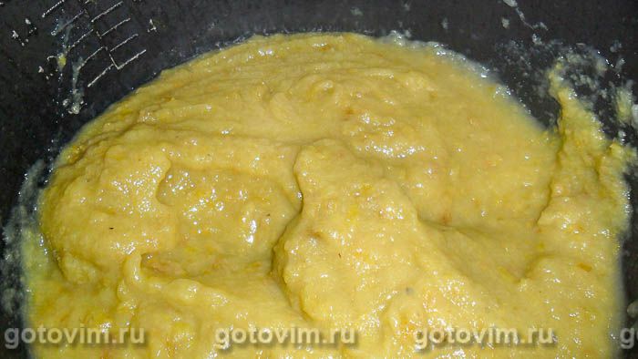 Затем получившуюся массу немного остудить, измельчить. Я использовала блендер, можно пропустить через сито, использовать терку.