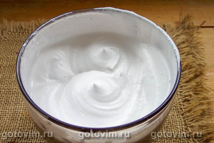 В отдельной миске взбить жирные сливки, пока слегка не загустеют. Как только станут заметными следы от венчиков, перестать взбивать.