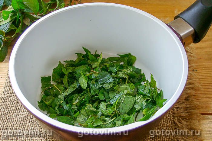 У мяты оборвать листочки, хорошо промыть от песка, обсушить на полотенце и измельчить руками.