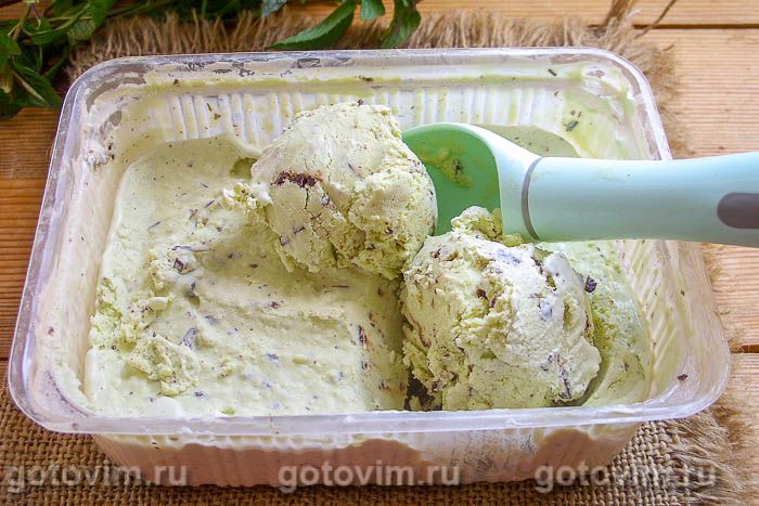 Раскладывать готовое мятное мороженое с шоколадной крошкой специальной ложкой. Мятное мороженое с шоколадом не требует абсолютно никаких дополнений в виде топпингов и посыпок, оно невероятно освежающее. Приятного аппетита!