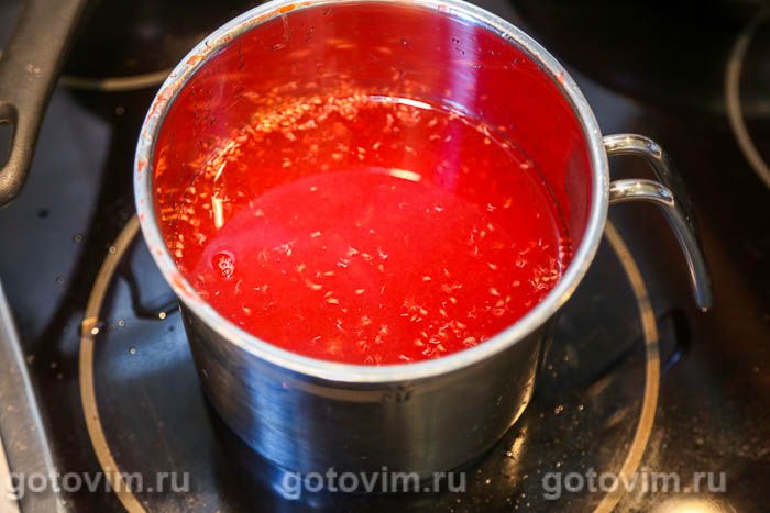Оставшийся в сите жмых переложить в кастрюлю, залить питьевой водой и довести до кипения. Проварить на маленьком огне минут 5.