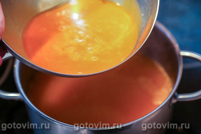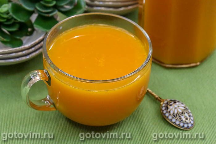 Влить в морс облепиховый сок, который вы убирали в холодильник.