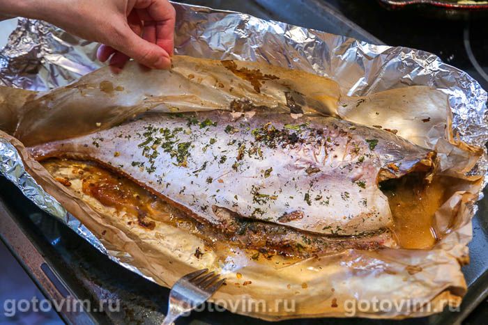 Пангасиус в духовке, запеченный целиком с лимоном и зеленью. Рецепт с фото