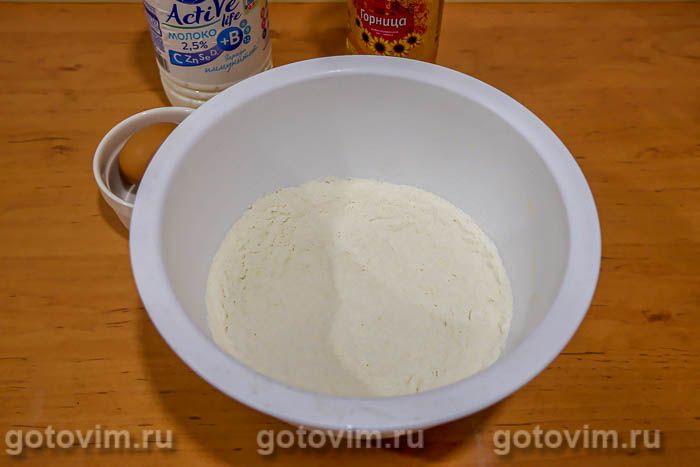 В миске подходящего объема смешиваем сухие ингредиенты: просеянную муку (350г), сахар (80г), соду (0,5 ч л), соль (0,25 ч л). Можно добавить ванилин или ванильный сахар, тогда панкейки будут еще и ароматными.