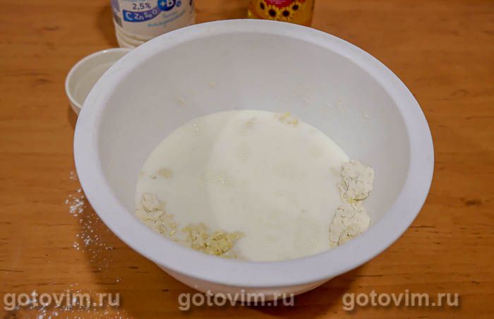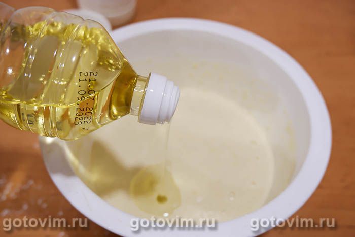 Наливаем в тесто 3 ст.л. растительного масла без запаха, снова перемешиваем тесто.