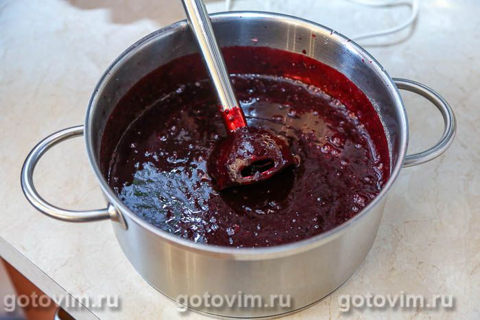 Чуть остывшие ягоды перемолоть в блендере до однородного состояния.