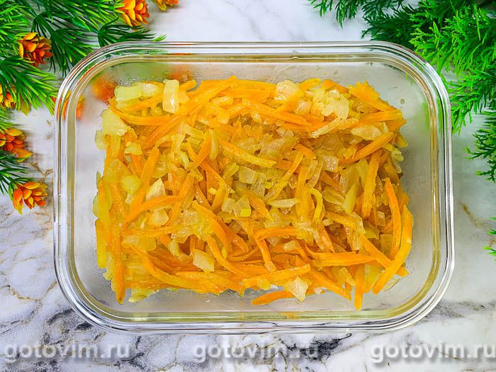 Рис промываем, несколько раз меняя воду, и отвариваем в подсоленной воде 6-8 минут. Полуготовый рис откидываем его на сито или дуршлаг, чтобы стекла лишняя жидкость.