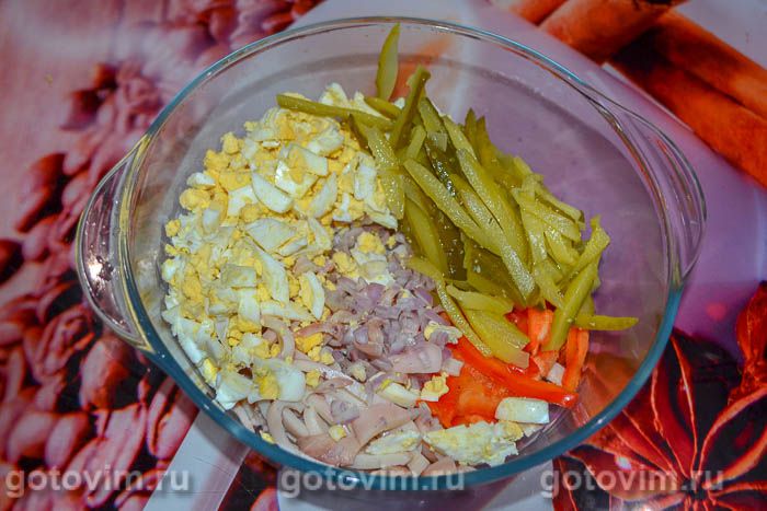 Салат из кальмаров с солеными огурцами. Рецепт с фото