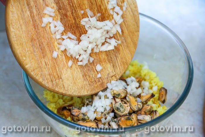 Салат с мидиями, помидорами и рисом. Рецепт с фото