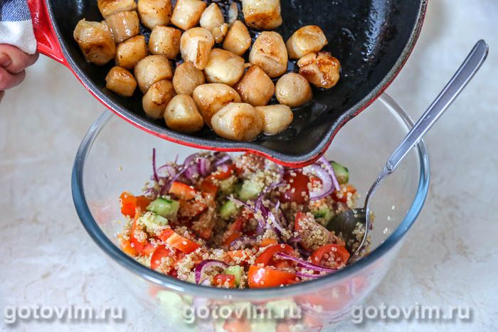 Салат с морскими гребешками и киноа. Рецепт с фото