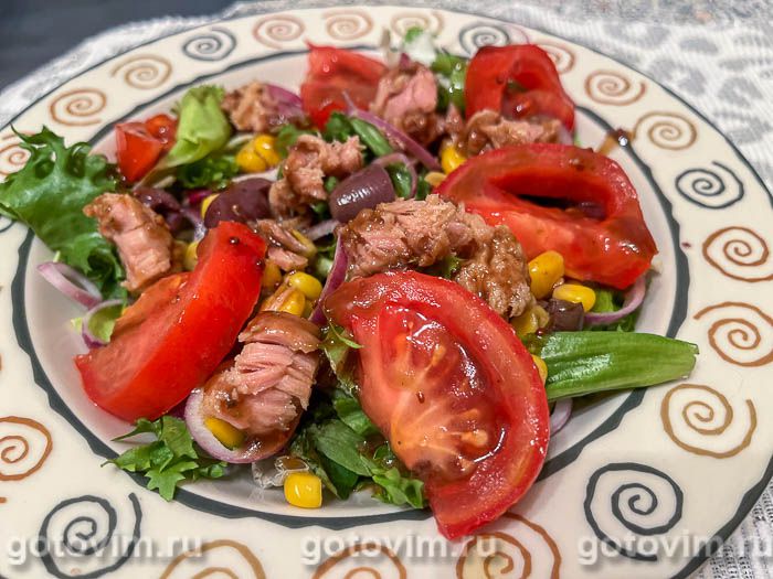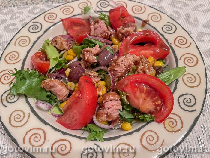 Средиземноморский салат с консервированным тунцом. Рецепт с фото