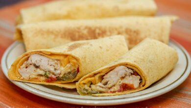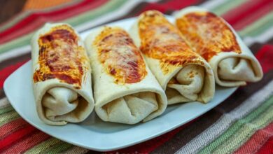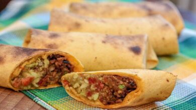 Для приготовления этих буррито подойдут и пшеничные, и кукурузные лепешки. Проще скручивать лепешки небольшого диаметра. Если вы выбрали большие тортильяс,…