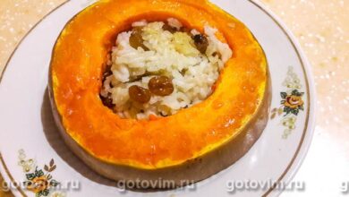 Печеная тыква с рисовой кашей и изюмом. Рецепт с фото