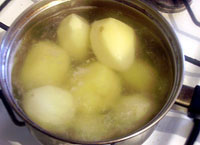 1 килограмм картофеля отварить в подсоленной воде (я варила 15 минут, до полуготовности).