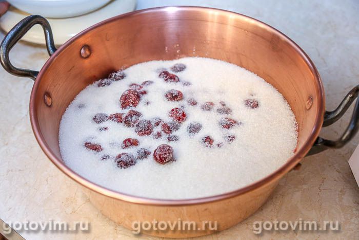 На следующий день перемешать вишню с сахаром и поставить на слабый огонь.
