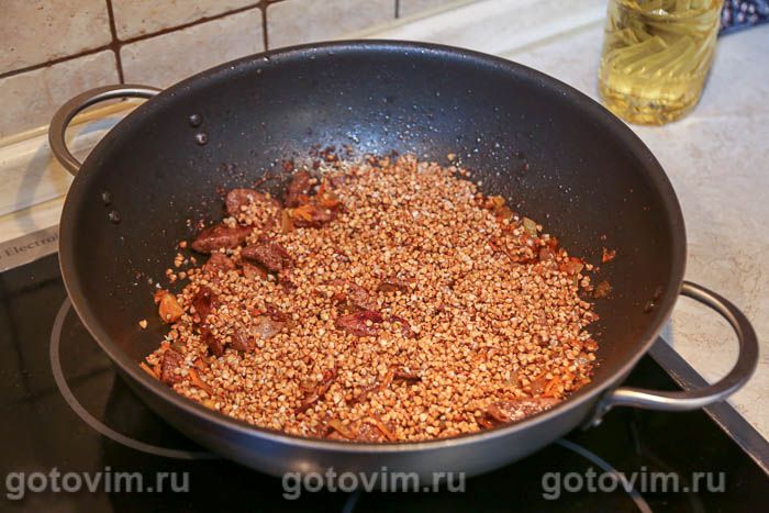 Утиная печень с гречкой в сковороде. Рецепт с фото