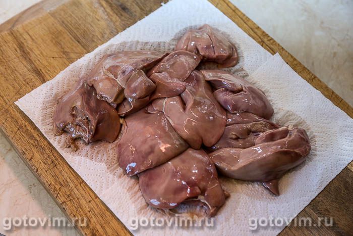 Утиную печень промыть под холодной проточной водой. Если остались протоки и частички жира, аккуратно срезать. Крупные дольки печени порезать на небольшие кусочки. Мелкие пусть остаются целыми. По желанию можно можно залить печенку молоком и оставить на несколько часов в холодильнике.